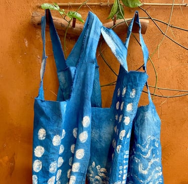 El proceso de teñir con añil no es solo una técnica ancestral, es un ritual de transformación. A través de manos pacientes, la planta revela sus azules profundos en un acto casi alquímico: el agua, el tiempo y el cuidado se convierten en color.