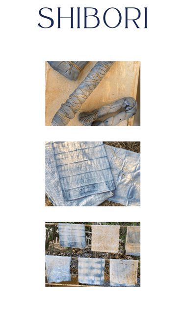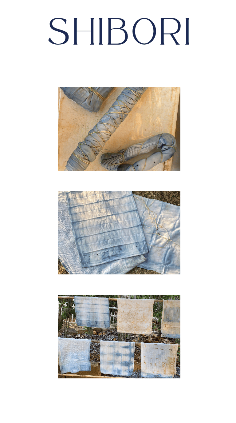 El Shibori es una técnica japonesa que consiste en crear pliegues y dobleces en la tela, para formar patrones que luego se tiñen con tintura de índigo.