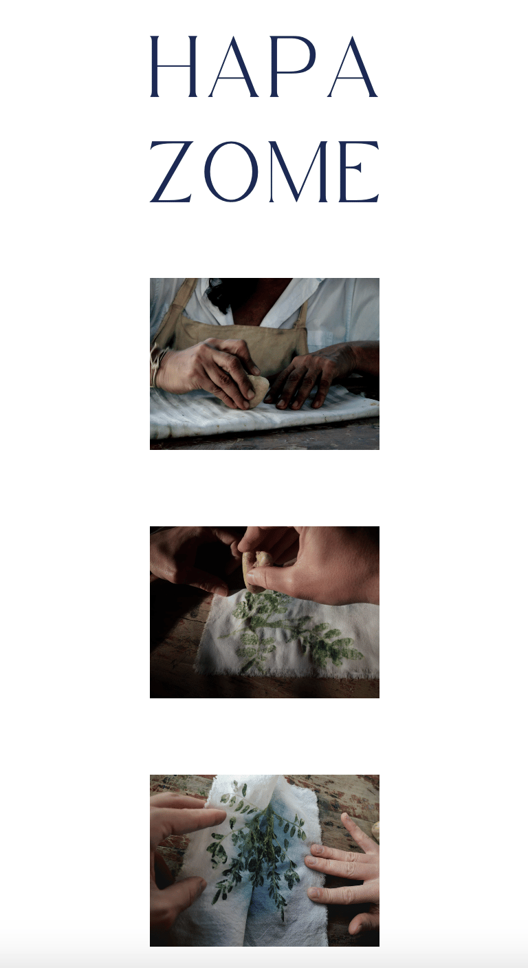 El Hapa Zome o Tataki Zome es una técnica japonesa de estampación que consiste en el arte de golpear con un mazo flores, hojas u otras partes vegetales de las plantas, para extraer sus pigmentos naturales sobre un tejido.