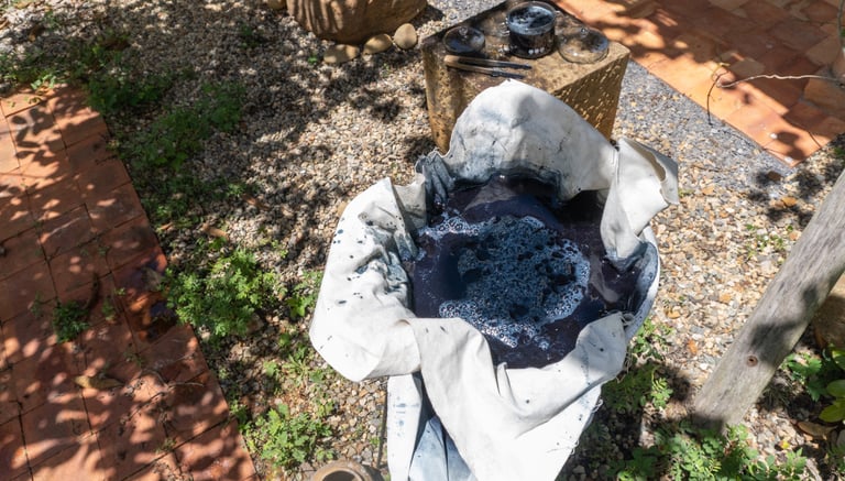 En este diálogo entre naturaleza y creatividad, descubrimos una forma de meditar con las manos, de crear en silencio, de conectar con lo esencial. El añil no tiñe únicamente telas: tiñe también nuestra percepción del tiempo.